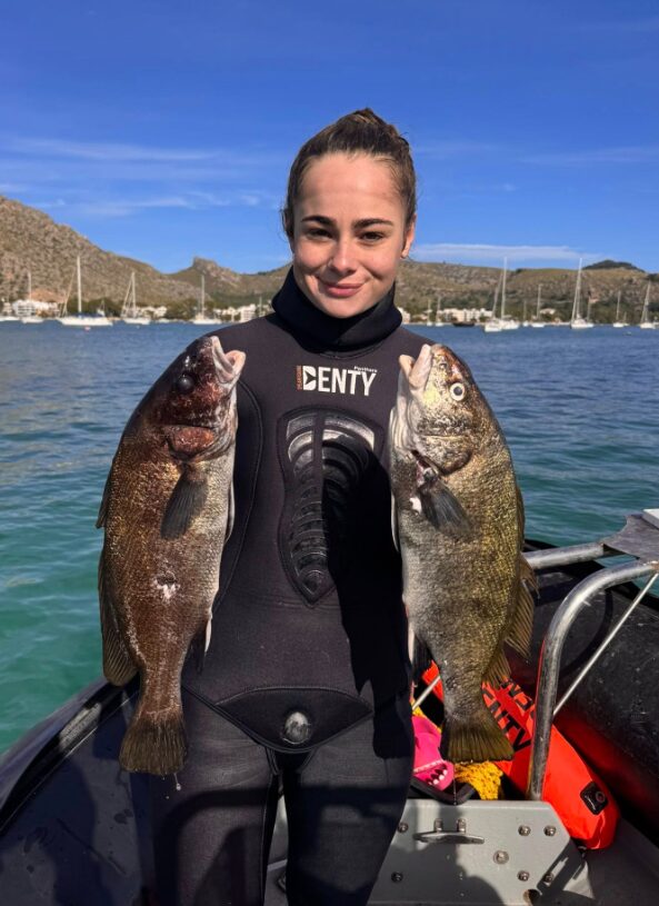 Un petit compte rendu de fin de compétition. Cette année, je suis partie avec Alfredo Guerra, j’attendais cette compétition depuis l’année dernière avec beaucoup d’envies. Nous partons avant tout le monde afin de bien nous préparer et nous rentrons après tout le monde afin de bien nous reposer. Premier jour sur place : grosse tempête, difficile de trouver un port pour mettre le bateau à l’eau, on décide de se reposer et de bien se préparer pour la seconde journée. Jour 2 : on fait une belle journée de repérage sur la Demi, zone annoncée de la baie de Pollenca. Visibilité variable entre 2 et 4 m. Pas facile pour repérer dans ces conditions, peu de poissons, mais on s’accroche, après tout ce n’est que le premier jour de repérage. Jour 3 : on arrive au bateau et le bateau n’est plus accroché à la bouée où on l’avait laissé. Il n’y avait que peu de vent annoncé et pourtant cela a suffi à emporter le bateau sur la plage. Nous aurons mis plus de trois heures à deux à réussir à le sortir. Quelques dégâts mais rien de grave. Cela nous empêche de repérer sur cette journée. Jour 4 : le moral est un peu à la baisse avec cette météo très compliquée, mais nous apprenons que la zone est agrandie à toute la baie, cela change totalement notre repérage et nous demandera deux fois plus de travail. L’avantage est que la zone de gauche qui vient d’être ouverte est plus claire que l’autre. Jour 5 : on a une belle organisation de repérage avec Alfredo, on essaye de se relayer afin de ne pas trop se fatiguer. Nous partons les premiers le matin et nous rentrons les derniers le soir. Des journées entre 8 et 12 heures de repérage. Jour 6 : la dernière journée de repérage est toujours la plus belle, la plus prolifique, on check le parcours et sur le peu de temps qu’il nous reste on continue à chercher. Sur une des dernières apnées, avant de rentrer, je pose Alfredo sur une vingtaine de mètres et surprise, sur cette patate de coralligène, un banc de sars énormes sera là. Jour 7 : ça y est, on y est, c’est le grand départ. La compétition doit se lancer à 8 h 30. Nous sommes sur place à 7 h 30, nous nous rendons au port de Maldent mais le vent est très fort, ça annonce une journée très compliquée. Arrivés au port à 20 minutes du début de la compétition, le sondeur nous lâche. Heureusement, à cause des conditions, la compétition est reportée à 10 h et ne durera que 4 heures au lieu de 5. Merci capitaine Buisson d’avoir pris le temps de m’aider à refaire fonctionner le sondeur. Ça y est, il est 10 heures, top départ, on met les gaz sur notre premier point, il n’y a personne sur la pierre mais malheureusement je lâche un tir qui n’atteindra pas le poisson. La compétition commence plutôt pas mal. Ce n’est pas grave, on fonce sur la seconde zone qui est une zone à labridés. À peine dans l’eau, je tire une saupe qui sera non valable à 285 g au lieu de 300 g. Je trouve un premier labre que je monte sur le bateau assez rapidement, au lieu de faire du point à point je décide de palmer pour essayer d’en trouver d’autres. Malheureusement, je me ferai avoir par une lasagne et un autre labre. On décide de repartir sur la première zone qui est une magnifique pierre à corbs. J’en tire un premier assez rapidement au 95 dans une pierre très difficile qui fera 1 kg 345, il sera le plus gros poisson de la compétition hommes/femmes. Je passe dans le second trou où je ne vois que les nageoires et le ventre des corbs, je décide d’envoyer le fusil sans rien y voir et de lâcher un tir à l’aveugle. La flèche se pose, je tire mon fil, je vois que rien ne bouge, je les ai ratés mais ça c’était prévu, et finalement quand j’attrape la flèche j’ai tiré un corb de 730 g dans la bouche, ce qui l’a immobilisé. Je retourne dans la première pierre où, après quelques tentatives, j’arrive enfin à lâcher un tir, ma flèche se bloque, impossible de la récupérer, j’essaye de tirer comme je peux et finalement je remonte un poisson de 1 kg 230. On décide de changer de zone car je n’arrive plus à prendre d’autres poissons. Malheureusement, sans réussite, on aura quelques péripéties où le sondeur s’éteint, mes sinus ne passent plus. La compétition ne durant que quatre heures, j’avais déjà épuisé 2 h 30, il fallait changer de stratégie immédiatement. On décide de prendre le large et de partir de l’autre côté de la baie, 20 minutes de navigation, on croise les doigts pour que ce soit le bon choix ; sur le chemin, la bande de ragréage du bateau s’arrache, ce qui nous freine énormément. Arrivés là-bas, on va sur un point où Alfredo avait vu un congre au début du repérage, malheureusement le dernier jour il n’y était plus, mais on décide d’y aller quand même. Sur place, belle surprise, il est là ; dans l’eau trouble, ce qui ne me facilite pas la tâche pour le tirer, mais je finis par le remonter avec trois flèches. Cela fera un beau poisson de presque 3 kg. Puis c’est le moment de partir sur la pierre à sars, mais à mon grand regret mes sinus ne passent plus du tout, j’essaye de faire plusieurs essais mais rien n’y fait, il faut de nouveau changer de stratégie. Je décide de faire toutes mes pierres à sars au rebord sans succès. Nous retournons à la pierre à corb, mais il m’est impossible d’en faire un quatrième. C’est presque la fin, il faut retourner très rapidement au port de départ. Fin de compétition, je finis avec cinq poissons et trois ouvertures d’espèces. Nous sortons de l’eau, on commence à se rendre à l’hôtel pour se préparer pour la pesée et là un appel du capitaine qui me dit que nos remorques ont disparu… un bon moment de panique pour au final apprendre qu’elles sont à la fourrière… bref, je ne m’étalerai pas sur les détails… Nous étions cinq filles et le verdict tombe : je finis sur