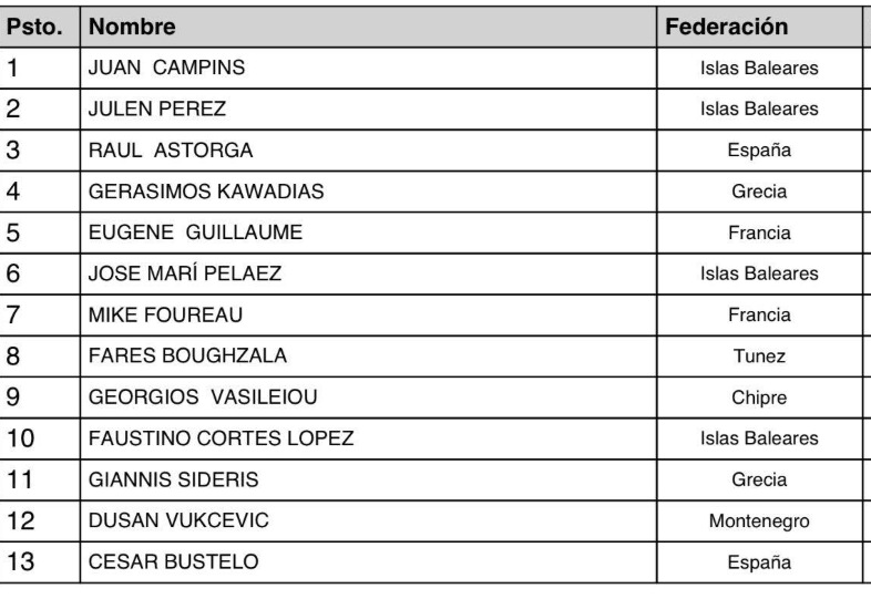 Le master est remporté par Juan Campins, un redoutable chasseur de l’île, souvent vainqueur de l’open de Palma ; et il est suivi de Julen Perez, un jeune prometteur de l’île, et de Raul Astorga (pour un énième podium au master).